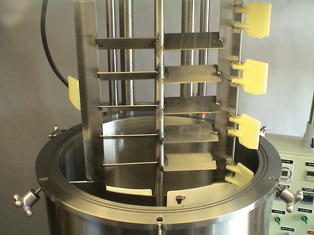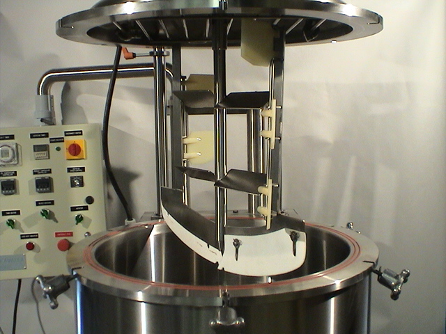 tandem 30 liter kettles with sealable lids and reflux condensers agitation with bottom sweeps agitation with side sweeps melting grid auto lift feature